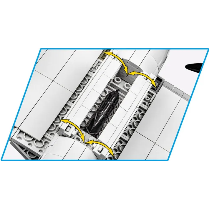 Denna byggmodell från COBI är framtagen i skala 1:32 och består av 710 högkvalitativa byggklossar. Modellen har rörliga propellrar, roder och hjul med gummidäck samt en öppningsbar cockpit där pilotfiguren kan placeras. Alla markeringar är utförda som slitstarka tryck utan klistermärken. Ett visningsställ, bomb och namnskylt ingår, vilket gör modellen perfekt för exponering i samling eller vitrinskåp.