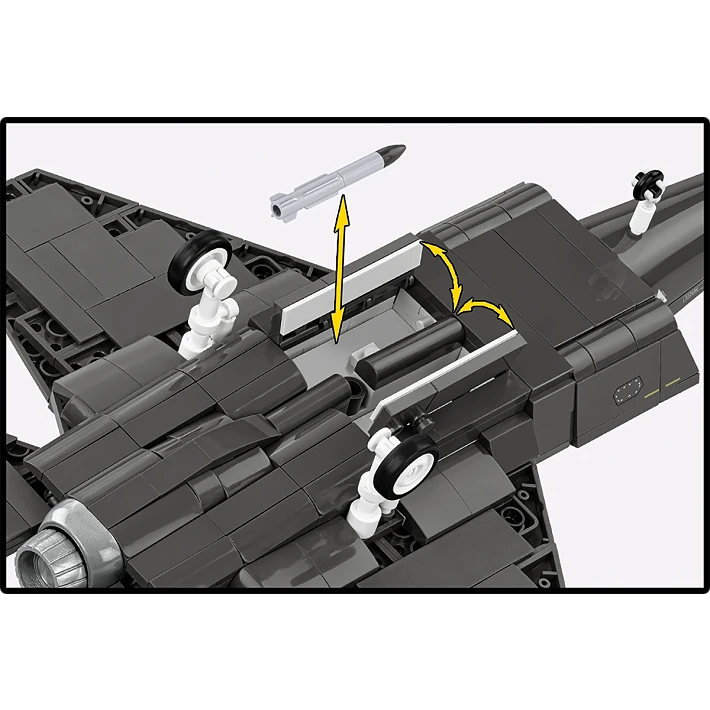 - Rörliga delar: Ja – cockpit kan öppnas, rörliga styrdelar, öppningsbart bombrum