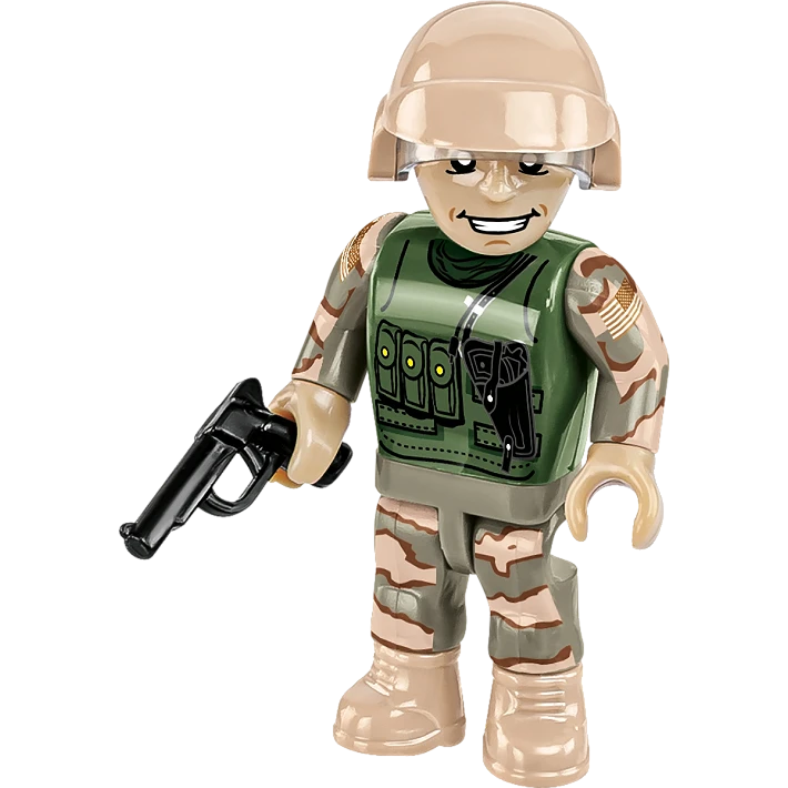 Denna byggmodell från COBI återskapar M1A2 Abrams i skala 1:35 med imponerande detaljnivå. Modellen har roterande torn, höj- och sänkbar 120 mm-kanon samt rörliga kulsprutor av typen M2 Browning och M240. Öppningsbara luckor, bakre serviceluckor och en avtagbar bakre pansarplåt ger möjlighet att titta närmare på modellens konstruktion. Samtliga markeringar är tryckta direkt på klossarna – inga klistermärken används.