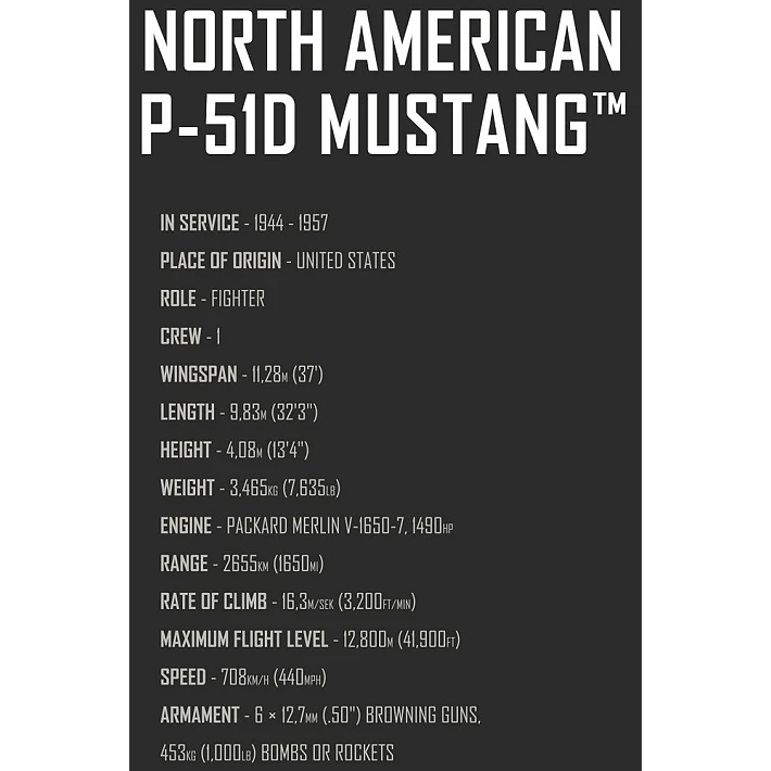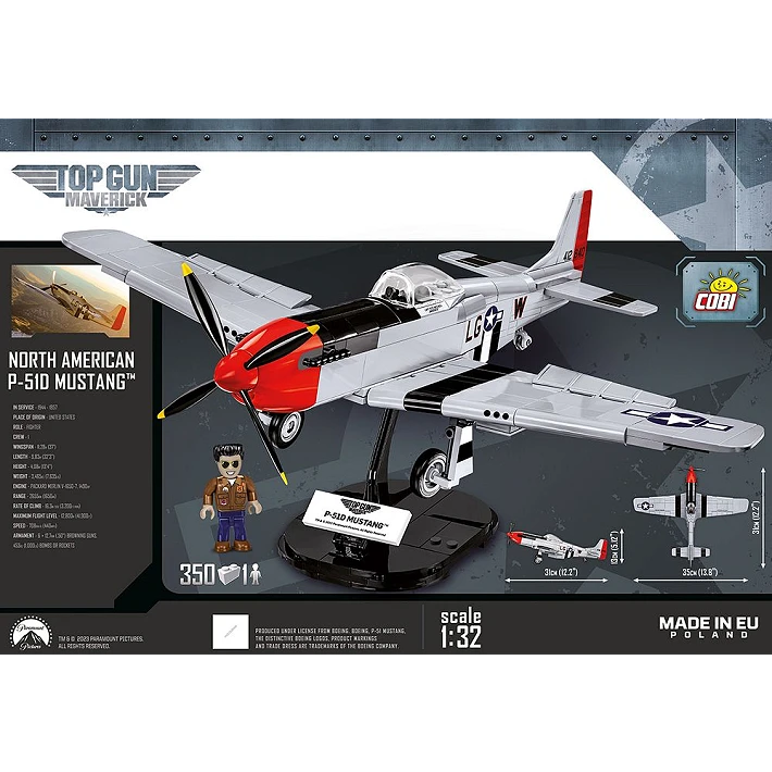 COBI P-51D Mustang byggsats låter dig bygga det klassiska stridsflygplanet från TOP GUN: Maverick™ som en detaljerad byggmodell i skala 1:32.
