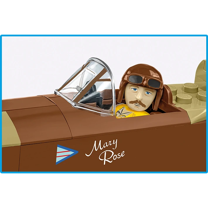 Denna byggmodell från COBI återskapar Spitfire Mk. IXe med noggranna proportioner och klassisk siluett. Modellen har rörliga hjul, rörliga roder och en öppningsbar cockpit där pilotfiguren kan placeras. I stället för klistermärken används slitstarka tryck, vilket ger ett exklusivt och hållbart samlarresultat. Ett stabilt visningsställ med namnskylt ingår för snygg exponering i hylla eller vitrinskåp.