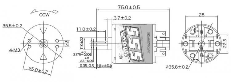 - Axeldiameter: 3.17mm