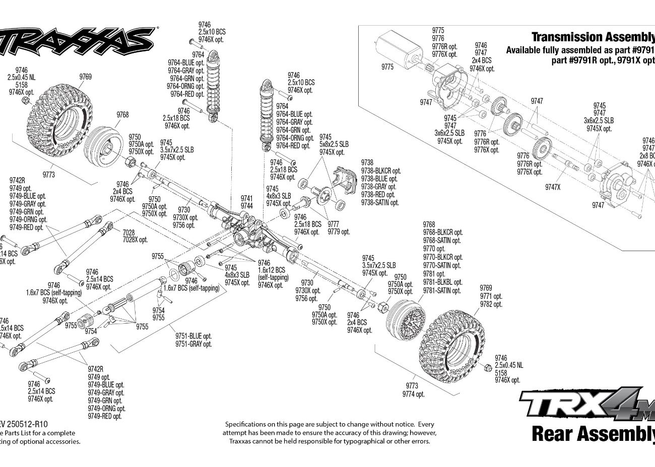 TRX-4M körs på en sofistikerad fyrlänksupphängning med kraftigt länkage fram och bak. Stora fram- och bakaxlar har utmärkt artikulation för att klättra över de tuffaste hindren.