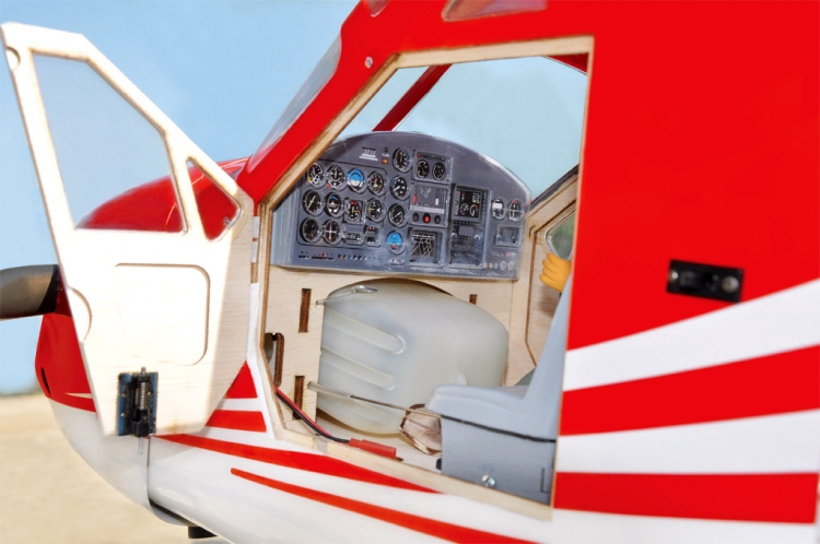 Den detaljerade kabinen innehåller en instrumentpanel och en realistisk pilotfigur vilket bidrar till modellens skalautseende.