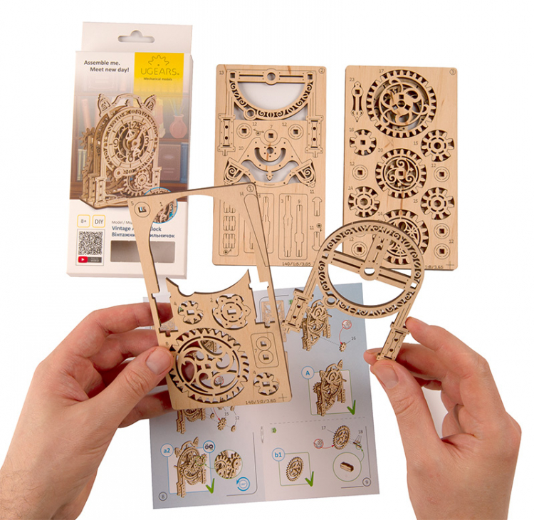 Den passar perfekt för alla som gillar retrodesign, steampunk, gamla klockor eller Ugears karakteristiska kombination av ingenjörskonst och kreativt byggande.
