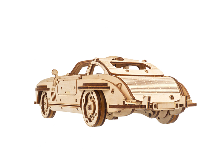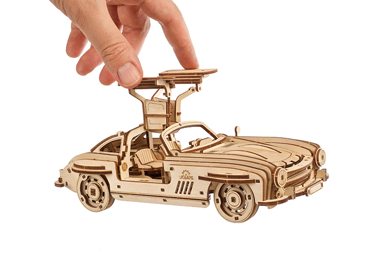 Ugears Winged Sports Coupe är en stilren mekanisk sportcoupé inspirerad av klassiska prestandabilar med ikoniska måsvingedörrar.
