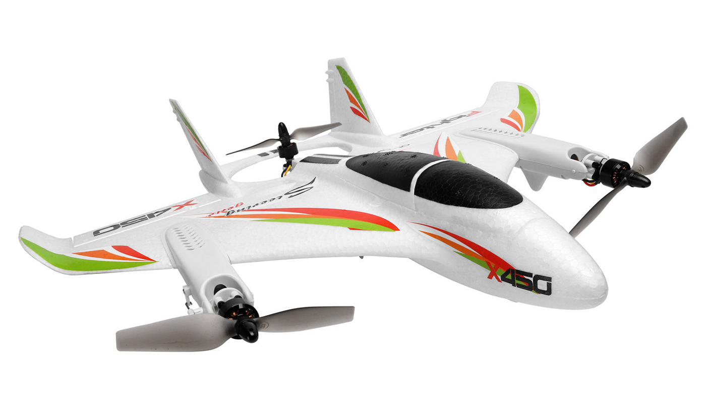 XK X450 VTOL Brushless Flygplan RTR är ett unikt radiostyrt flygplan som kombinerar egenskaperna från en multirotor och ett klassiskt fixed-wing-plan. Modellen klarar vertikal start och landning, hovring samt effektiv horisontell flygning, vilket gör den både mångsidig och rolig att flyga. Perfekt för dig som vill testa något mer avancerat än ett traditionellt RC-flygplan men ändå ha stabila flyglägen att växa med.