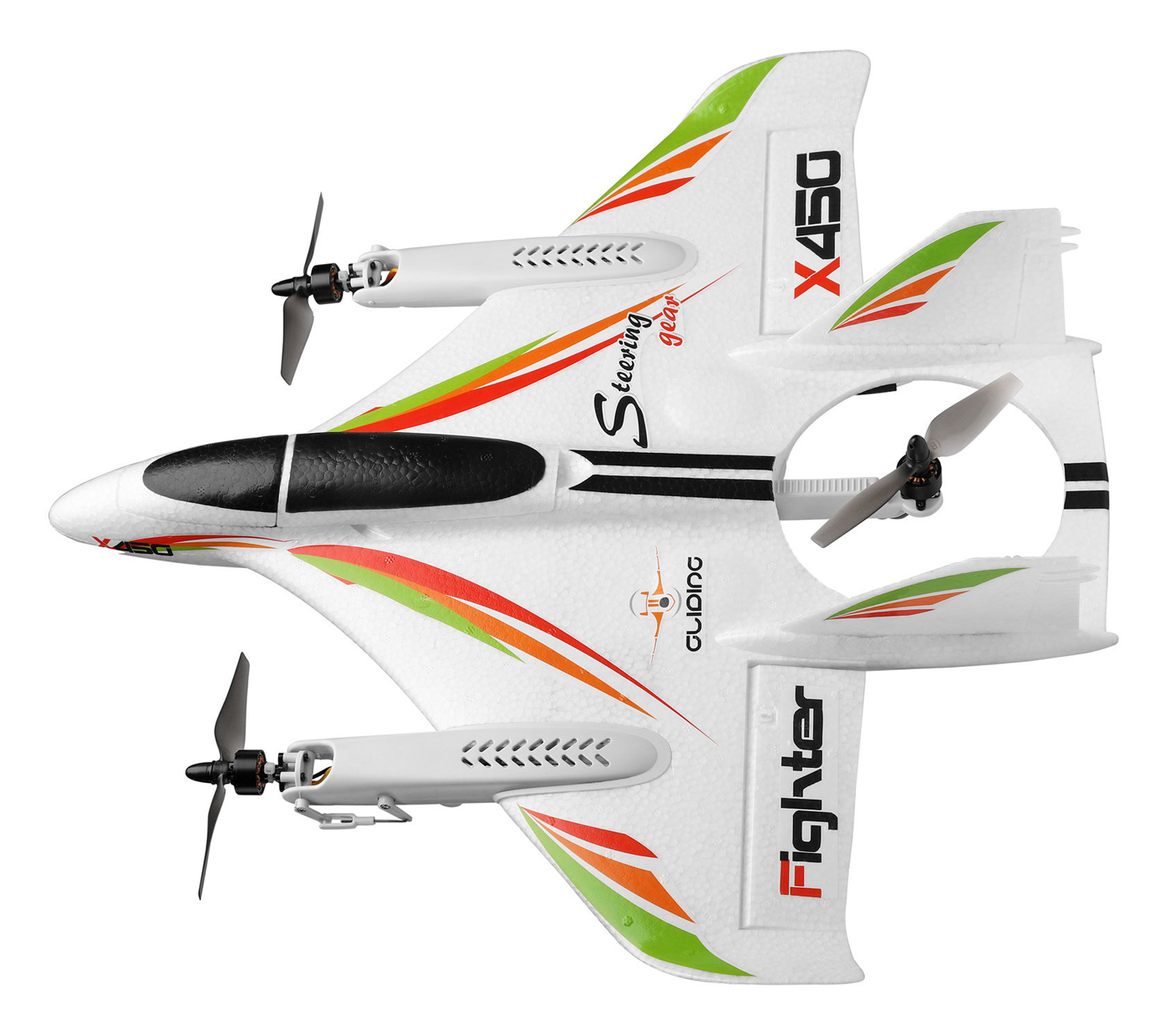 XK X450 är framtagen för dig som vill ha det bästa från två världar. I multirotor-läget kan modellen starta och landa vertikalt samt hovra stabilt. Vid övergång till horisontell flygning får du känslan av ett riktigt fixed-wing-plan med bättre effektivitet och längre flygtid. 6G-läget ger extra stabilitet, medan 3D-läget öppnar upp för mer aktiv och avancerad flygning.